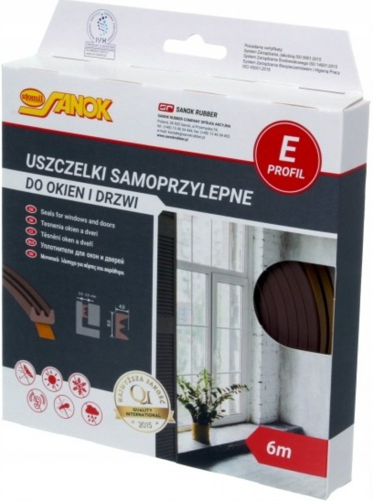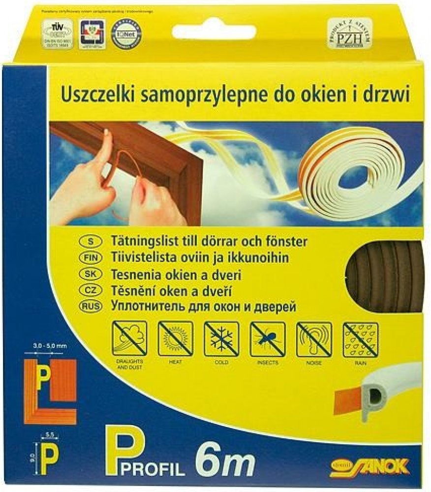 Těsnění do oken a dveří samolepící 9x4mm TYP E hnědé 6M