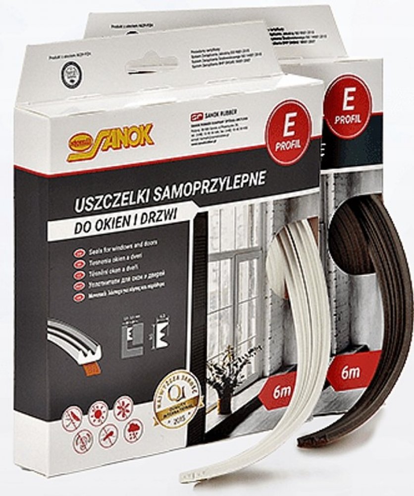 Samolepicí těsnění do oken a dveří, vyrobeno z pryže s elastomerem EPDM, která má velmi dobrou odolnost proti povětrnostním vlivům, UV záření, vlivům vzduchu i vody.