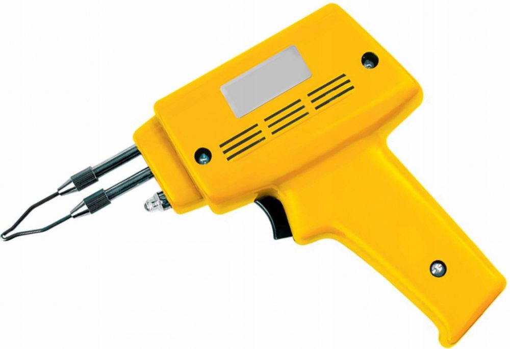 Pistolová transformátorová pájka Vorel 100 W pro všestranné použití v elektrotechnice a dílně. Klasické provedení se žárovkou na osvětlení pracovní plochy. Baleno v kartonové krabici, bez příslušenství.