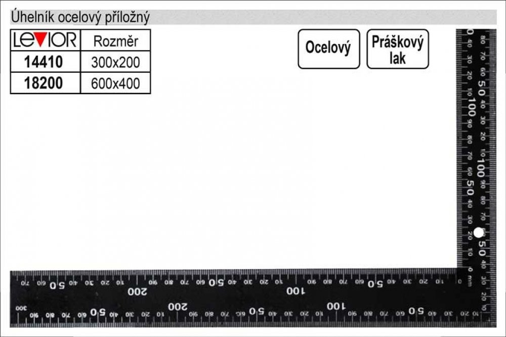 Vorel úhelník truhlářský 400 x 600 mm černý TO-18200 Úhelník truhlářský slouží k přesnému měření a vyznačování pravých úhlů při tesařských a truhlářských pracích. Výrobek poskytuje pevnou a přesnou konstrukci vhodnou pro práci s většími rozměry.