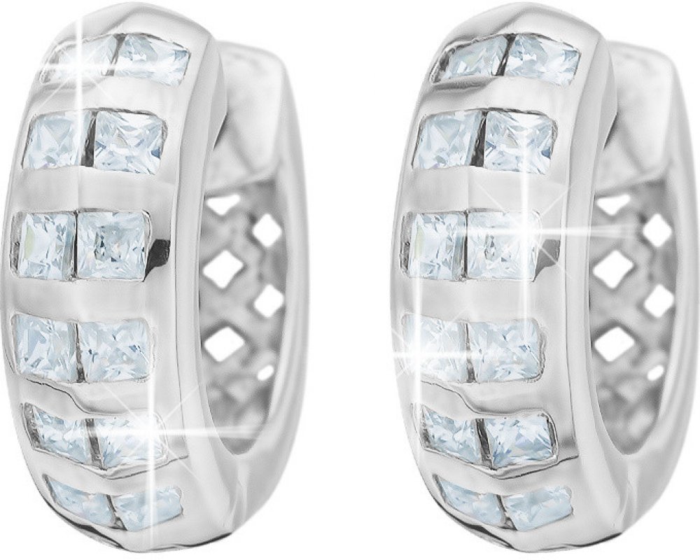 Stříbrné náušnice s bílými zirkony kruhy.