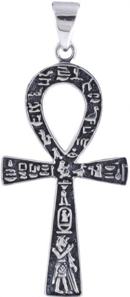 Stříbrný přívěsek egyptský kříž anch s hieroglyfy.