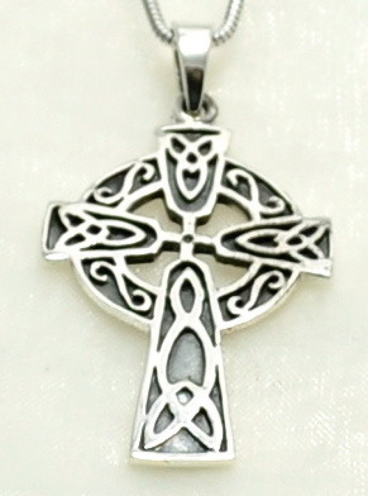Stříbrný přívěsek keltský kříž zdobený jemnými ornamenty.