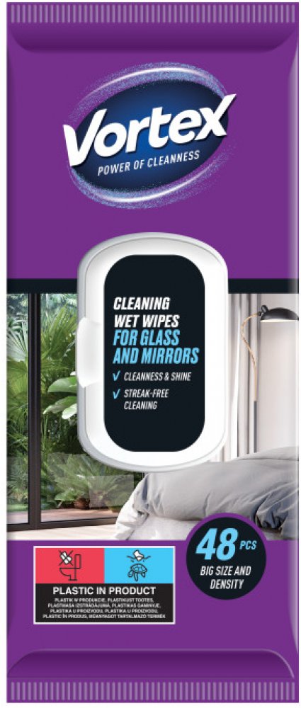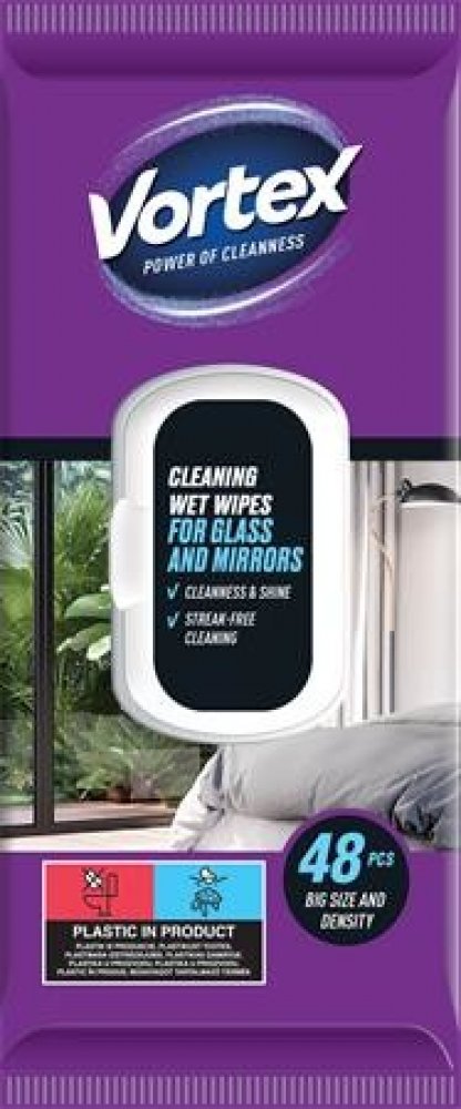 Vortex vlhčené čistící ubrousky na sklo a zrcadla, 48 ks
