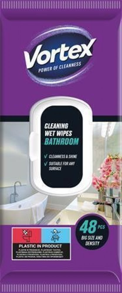 VORTEX Vlhčené utěrky, koupelna, s uzávěrem, 48 ks