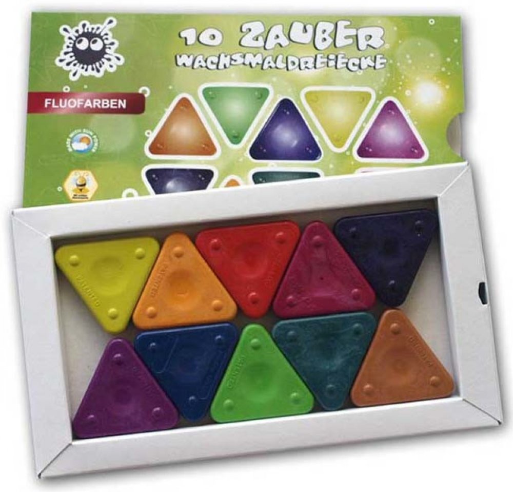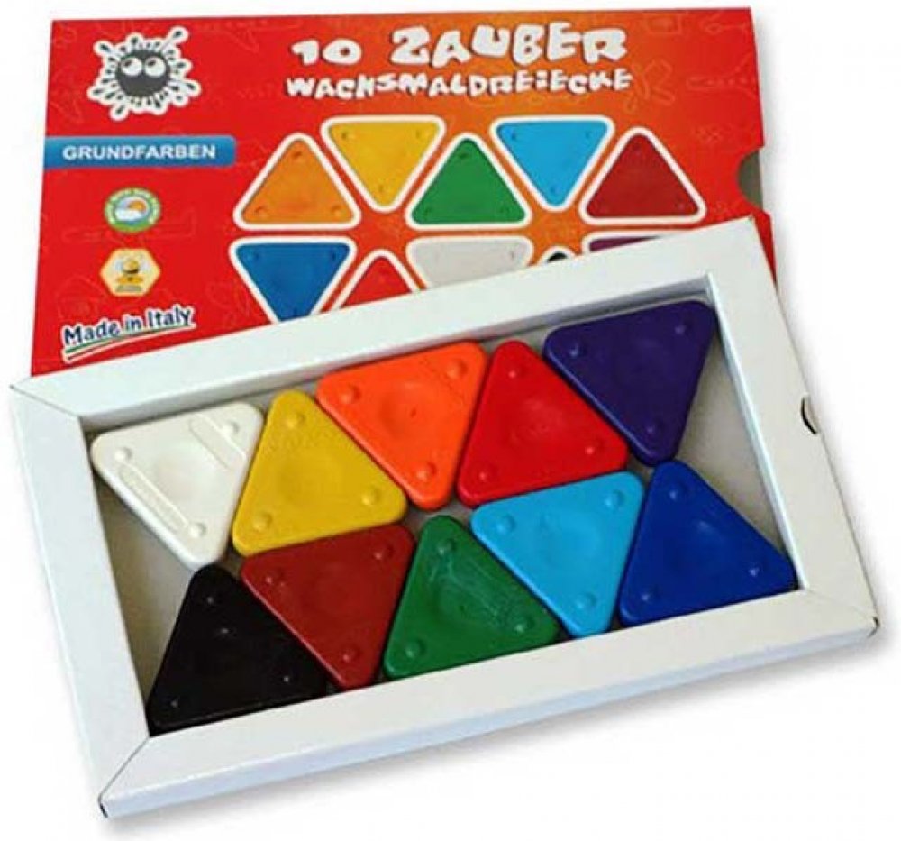 Souprava trojbokých voskovek vysoké kvality. Voskovky trojúhelníkového tvaru, intenzivně barevné, velice pevné, odolné, nelámavé a nešpiní ruce. Snadno se nanáší, vzájemně míchají a vrství. Trojhranné voskovky jsou vyrobené z přírodních vosků včetně včelího a z kvalitních pigmentů (množství barevného pigmentu v jednom trojúhelníčku je vícenásobně vyšší než v jiných voskovkách). Neobsahují plastické ani syntetické složky, nejsou toxické. Díky trojhrannému tvaru jsou ideální pro malé děti. Dobře se jim drží v ruce a skvěle je připravují pro správné držení tužky. Voskovky mají speciálně zapuštěný úchop, který umožňuje správnou koordinaci pohybu ruky a uvolnění svalů.