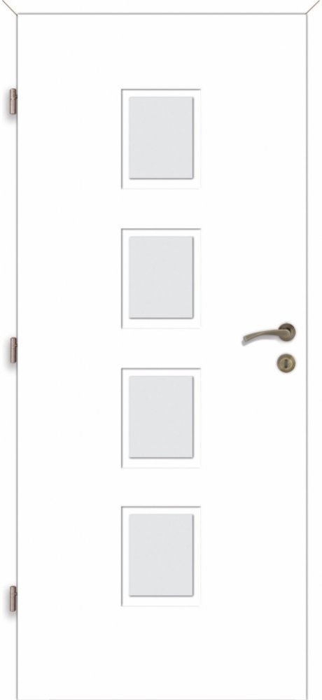 Falcové interiérové dveře Voster ARUBA 4/4 - Rám z MDF desky, s povrchem z dvou HDF desek - Stabilizační výplň voština - 3 šroubované čepové panty - Dozický zadlabací zámek s obyčejným klíčem - Zasklení saténovým sklem SATYNA o tloušťce 4 mm - z jedné strany hladkým, z druhé strany matným - Falcové interiérové dveře Voster jsou vhodné pro všechny zárubně, které jsou v souladu s CSN i oborovými nor...