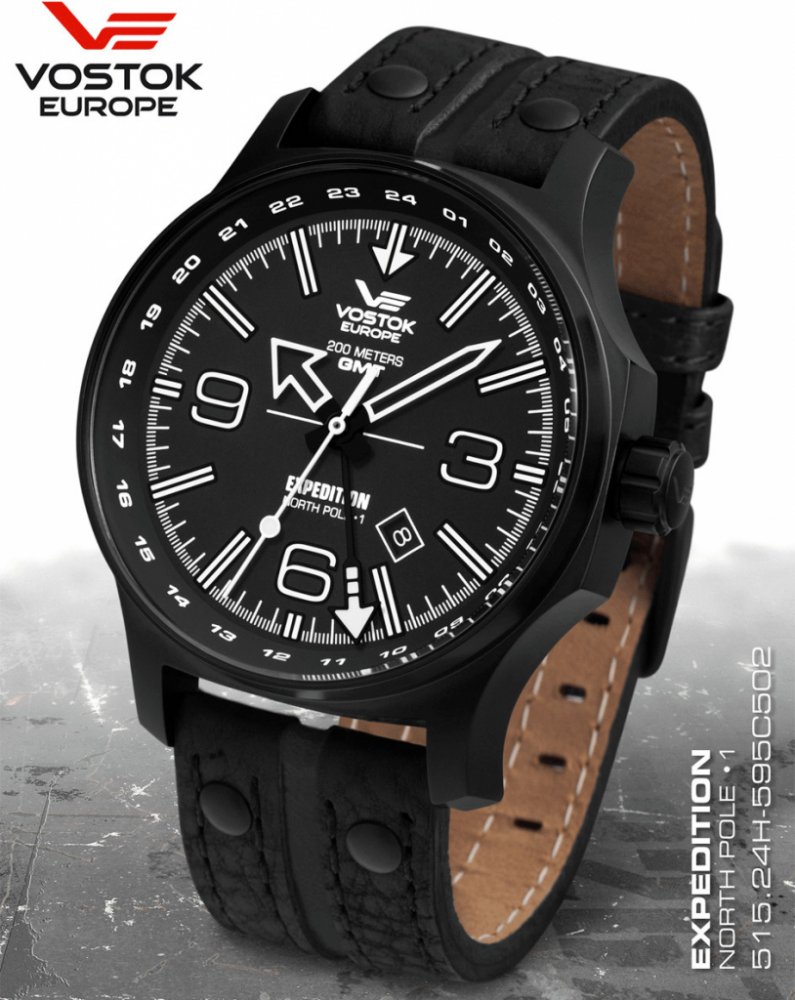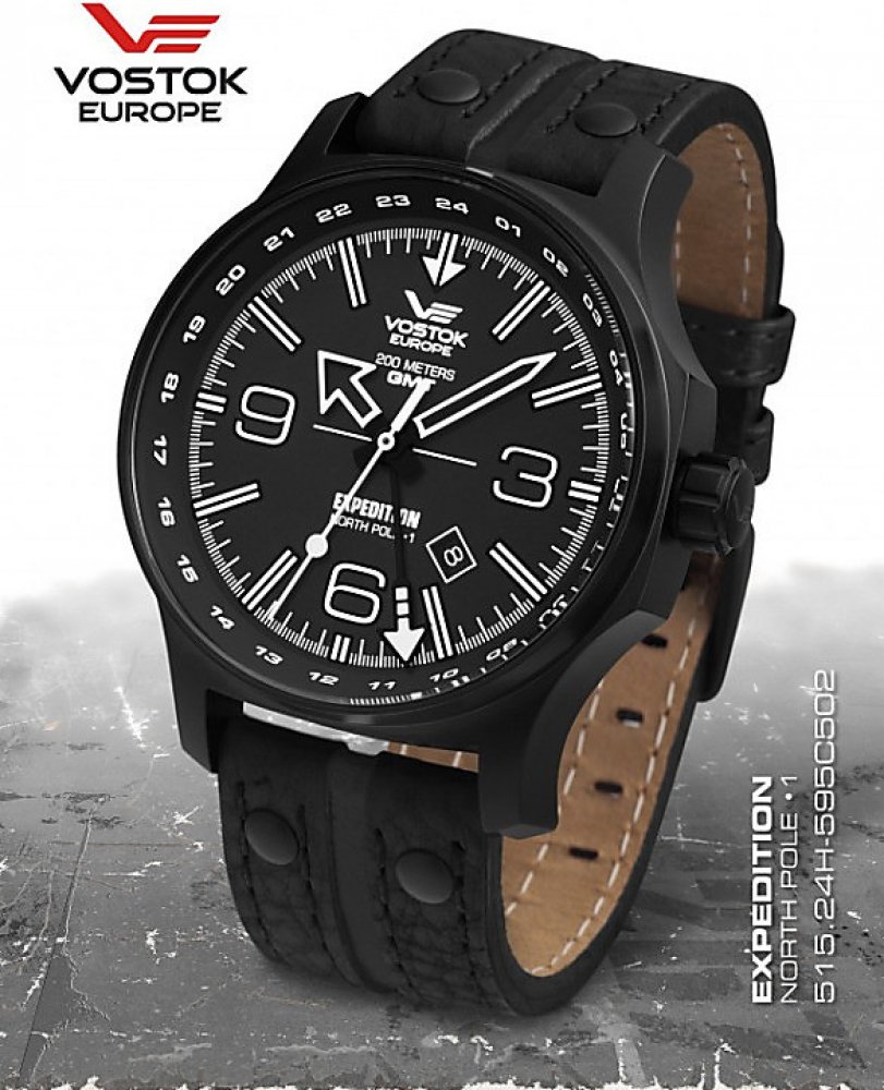 Vostok Europe analogové kůže ocel 200 m bateriové 124 g minerální letecké pánské bateriové - quartz bez osazení Expedition North Pole-1 kulaté černá černá na přezku 2.4 cm pro potápění (100+ m) s dočasným svícením (luminiscence/LED) s nenáročnou údržbou (quartz) bez chytrých funkcí na ruku s arabskými číslicemi velké 16 mm 47 mm s luminiscencí