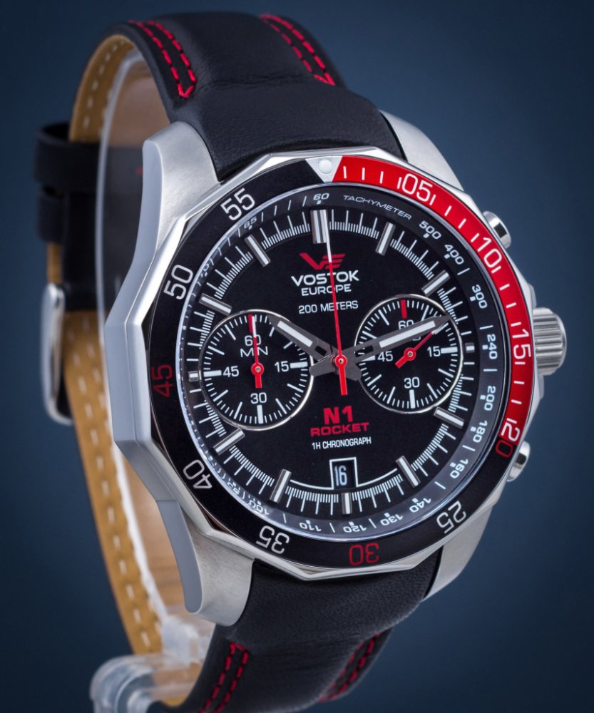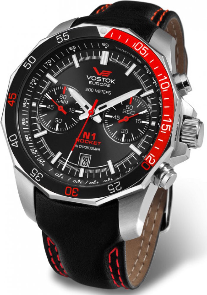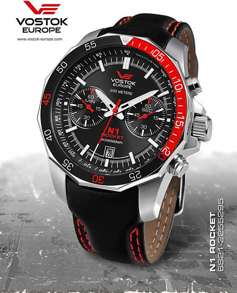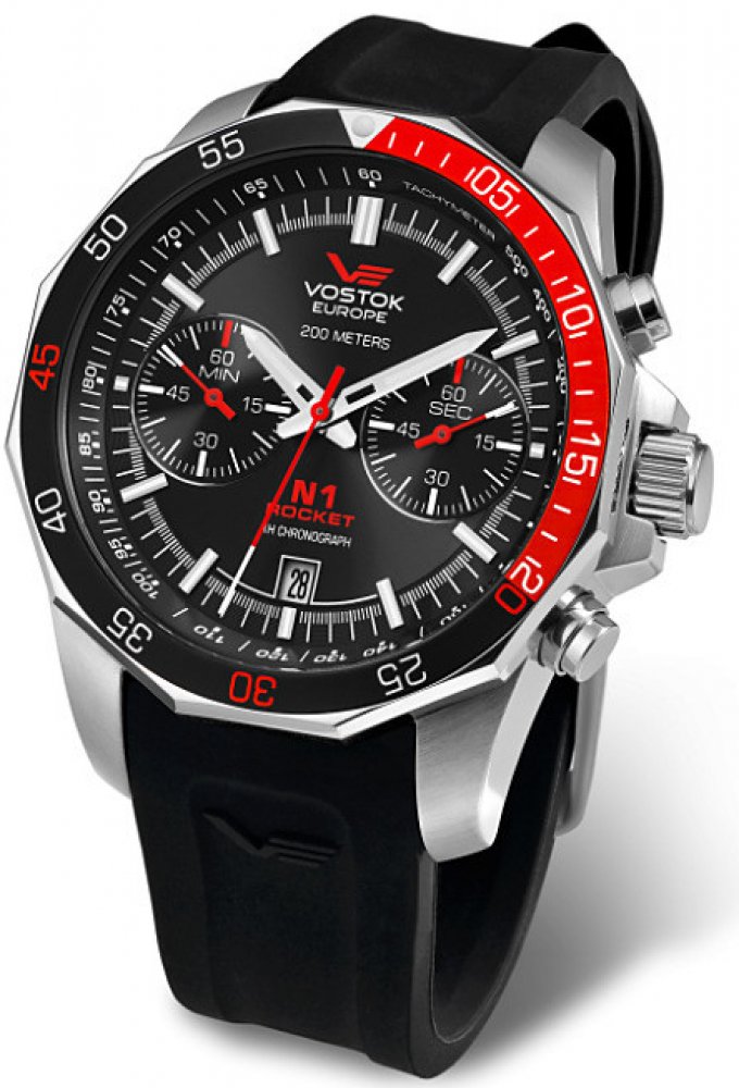 Vostok Europe analogové kůže sportovní pánské bateriové - quartz pro potápění (100+ m) 46 mm ocel 200 m bateriové 130 g minerální Rocket N-1 kulaté černá černá s luminiscencí na přezku 2.2 cm na ruku bez číslic stříbrná ocel velké 2 14 mm s nenáročnou údržbou (quartz)