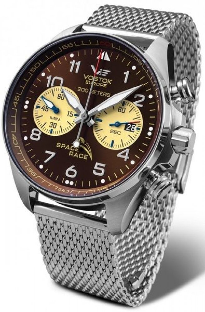 Vostok Europe analogové ocel letecké pánské bateriové - quartz pro potápění (100+ m) 46.0 mm chirurgická ocel 200 m bateriové 172 g minerální bez osazení Space Race kulaté stříbrná hnědá se superluminou posuvná spona 2.2 cm na ruku s arabskými číslicemi ocel 4.6 cm velké 16.5 mm 22.0 mm 2 16.5 mm 46.0 mm s trvalým svícením (tritium/Super-LumiNova) s nenáročnou údržbou (quartz) bez chytrých funkcí