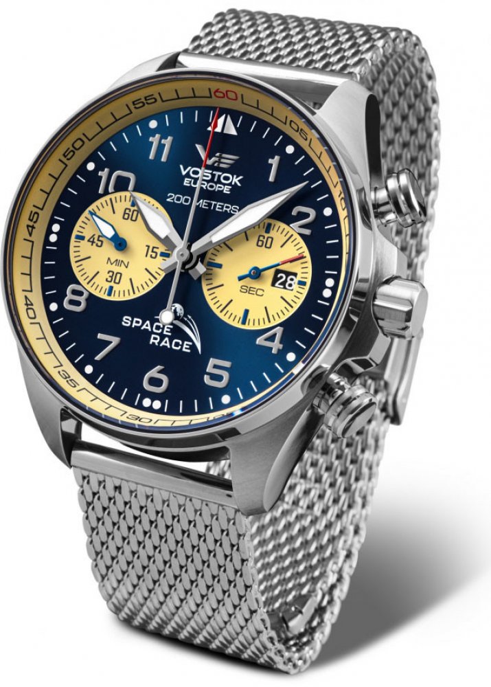 Elegantní pánské hodinky s chronografem značky Vostok Europe Space Race s vodotěsností 20 ATM