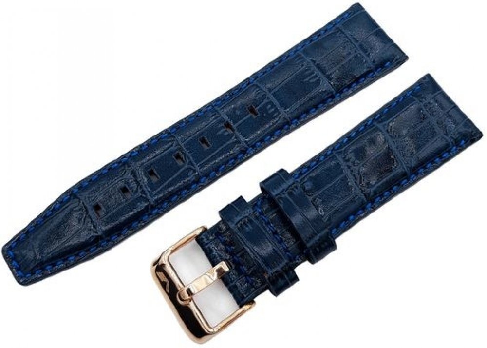 Originální kožený řemínek Vostok Europe je určený pro model GAZ 14 Limousine 6S21-565B596. Řemínek je vyroben v designu vzoru krokodýlí kůže v šířce 23 mm, se zlatou sponou a modrým prošitím.