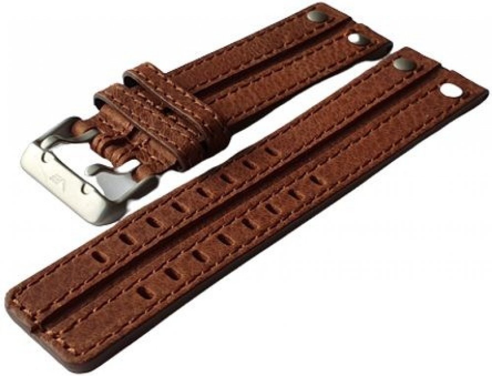 Originální kožený řemínek Vostok Europe pro modelovou řadu Expedition North Pole-1. Řemínek je vyroben z kůže v šířce 24 mm s matnou sponou, hnědým prošitím a matnými nýty.