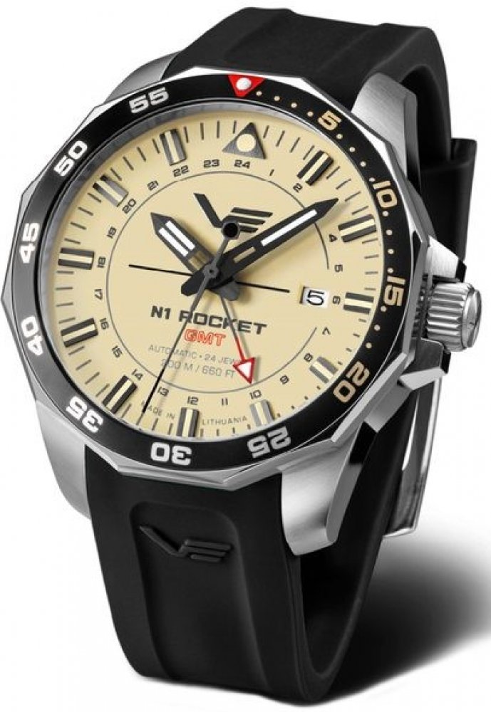 Pánské hodinky Vostok Europe N-1 Rocket Automatic GMT NH34-225A713S z modelové řady Rocket-N1 odkazují na tajný nedokončený projekt třístupňové nosné rakety, schopné vynést na nízkou oběžnou dráhu 90 tun nákladu, například vesmírnou stanici nebo komponenty lodě pro výpravu k Marsu. Hlavním motorem ve vývoji byl cíl dosáhnout jako první přistání člověka na Měsíci.