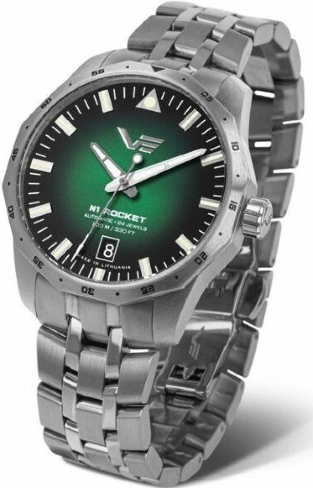 Vostok Europe analogové ocel sportovní unisex automatické pro potápění (100+ m) 39.0 mm chirurgická ocel 39 x 46.5 x 13.7 mm 100 m automatické minerální bez osazení N1 Rocket kulaté šedá zelená se superluminou motýlková spona 2 cm na ruku bez číslic ocel 3.9 cm střední pevná ocel 41 h 13.7 mm 20.0 mm 13.7 mm 39.0 mm s trvalým svícením (tritium/Super-LumiNova) s občasnou údržbou (automatické) bez chytrých funkcí