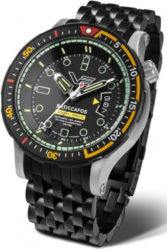 Pánské hodinky Vostok Europe Batiscafos Automatic NH35-511E767B představují úplně novou modelovou řadu pojmenovanou Batiscafos. Název „Batiscafos“ pochází z řeckého ‚bathys‘ (hlubina) a „skaphos“ (loď). Plavidla jako legendární loď Trieste, která se v roce 1960 potopila na dno Mariánského příkopu (10 984 ± 25 metrů), symbolizují odhodlání prozkoumávat neznámé.