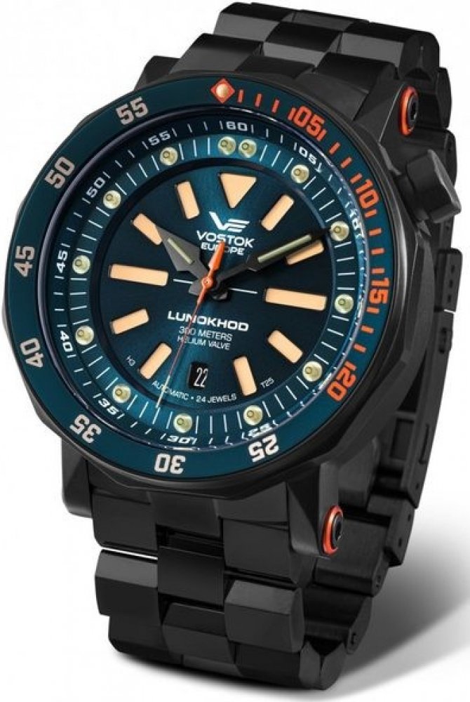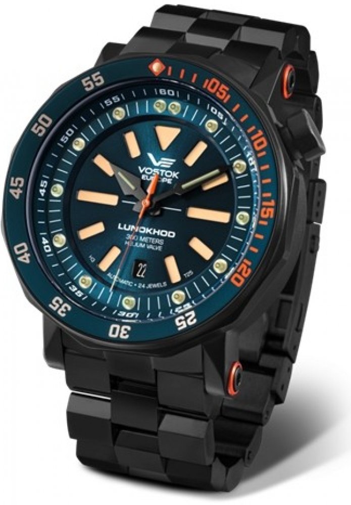 Vostok Europe analogové ocel sportovní pánské automatické pro potápění (100+ m) 49.0 mm ocel 300 m automatické minerální bez osazení Lunochod-2 kulaté černá modrá s tritiovými kapslemi překlápěcí spona 2.5 cm na ruku bez číslic 4.9 cm velké jednosměrně otočná 41 h 17.5 mm 17.5 mm s trvalým svícením (tritium/Super-LumiNova) s občasnou údržbou (automatické) bez chytrých funkcí