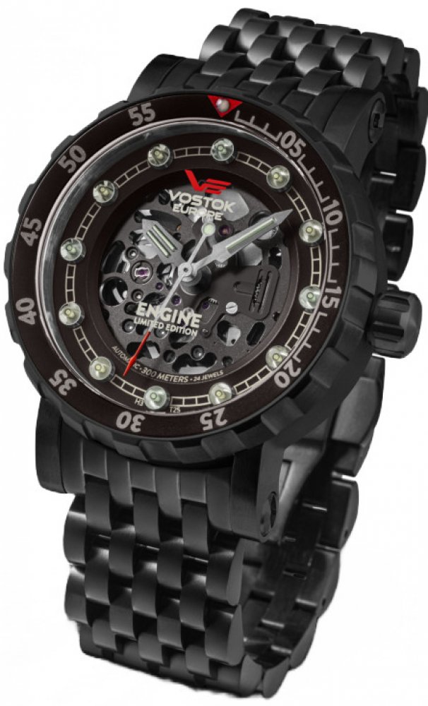 Jedinečné pánské hodinky značky Vostok Europe Engine Automatic Skeleton s ocelovým náramek, vodotěsností 30 ATM, osvětlené tritiovými kapslemi