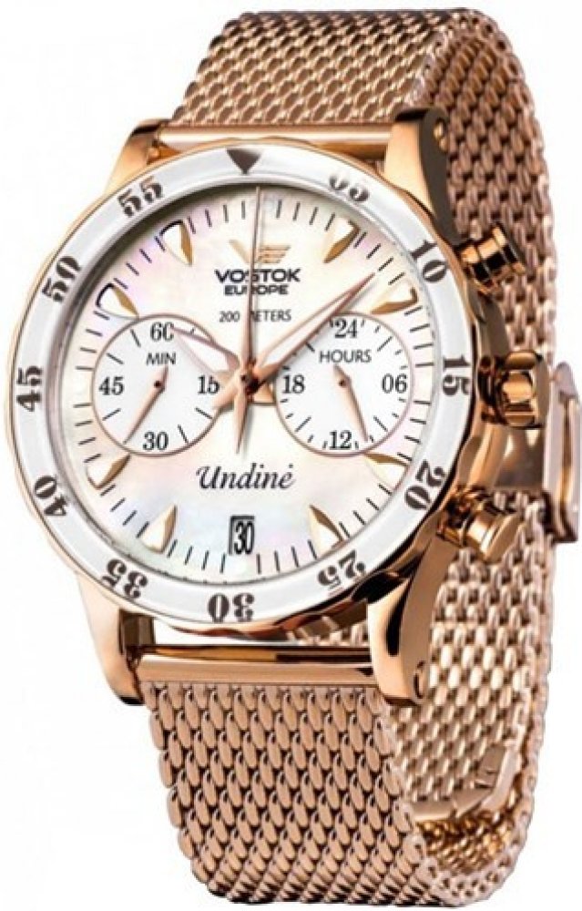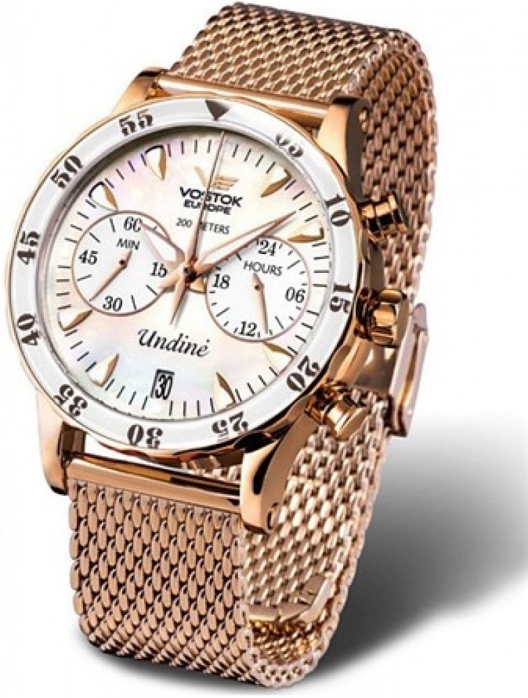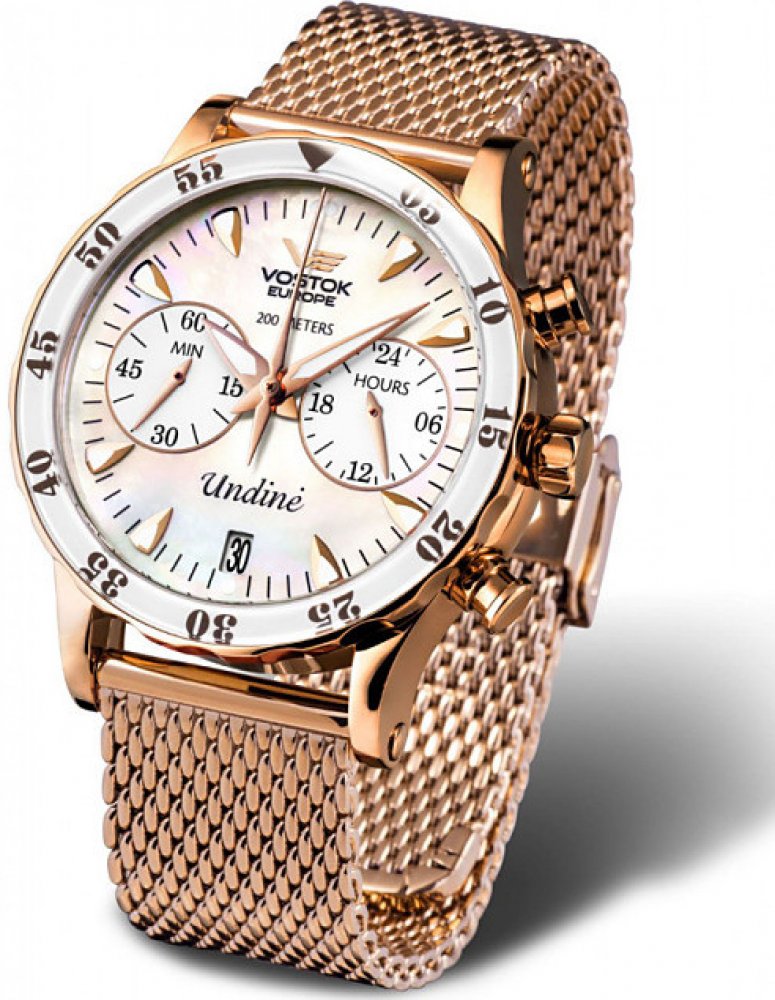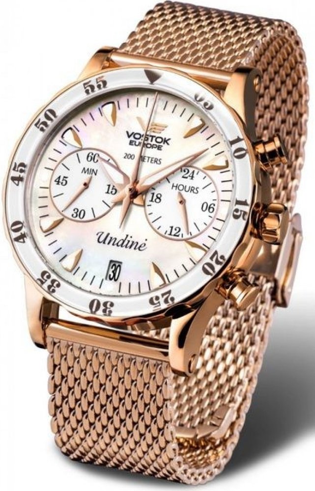 Jedinečné dámské hodinky značky Vostok Europe Undine s vodotěsností 20 ATM s chronografem v sadě se třemi řemínky.