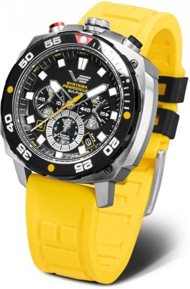 Vostok Europe silikon sportovní unisex 200 m minerální Systema Periodicum asymetrické žlutá na přezku 2.4 cm na ruku stříbrná ocel