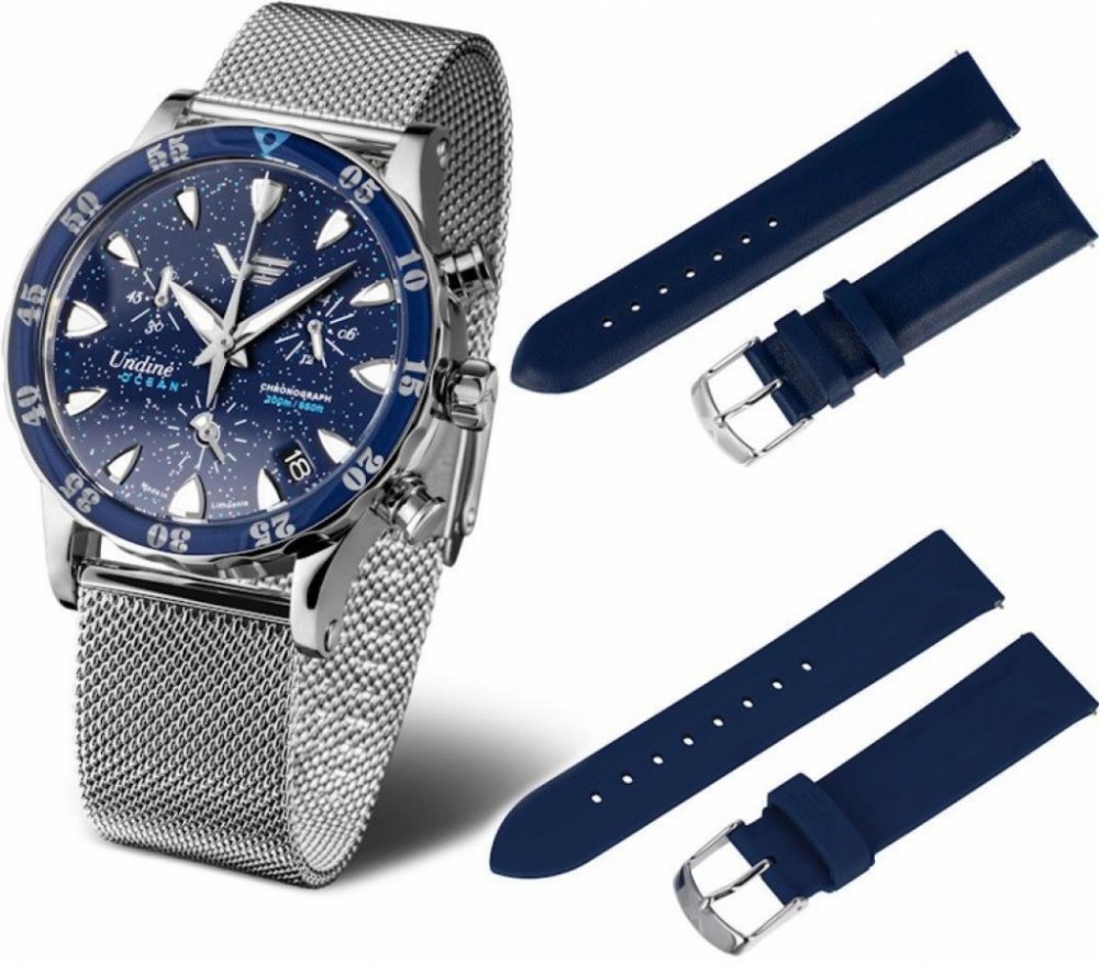 Vostok Europe analogové kůže ocel 39 x 48 x 13.5 mm 200 m bateriové minerální elegantní dámské bateriové - quartz bez osazení Undine kulaté modrá modrá trnová spona 2.0 cm pro potápění (100+ m) s trvalým svícením (tritium/Super-LumiNova) s nenáročnou údržbou (quartz) bez chytrých funkcí na ruku s hvězdami bez číslic stříbrná ocel 3.9 cm střední jednosměrně otočná 13.5 mm 20.0 mm 13.5 mm 39.0 mm se superluminou