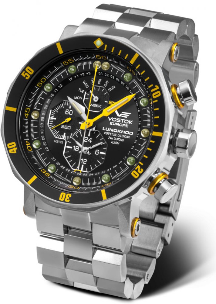 Vostok Europe analogové ocel sportovní pánské bateriové - quartz pro potápění (100+ m) 49.0 mm ocel 200 m bateriové minerální Lunokhod 2 kulaté žlutá černá s tritiovými kapslemi trnová spona 2.5 cm na ruku stříbrná ocel velké jednosměrně otočná 17.5 mm 25.0 mm 17.5 mm s trvalým svícením (tritium/Super-LumiNova) s nenáročnou údržbou (quartz) bez chytrých funkcí