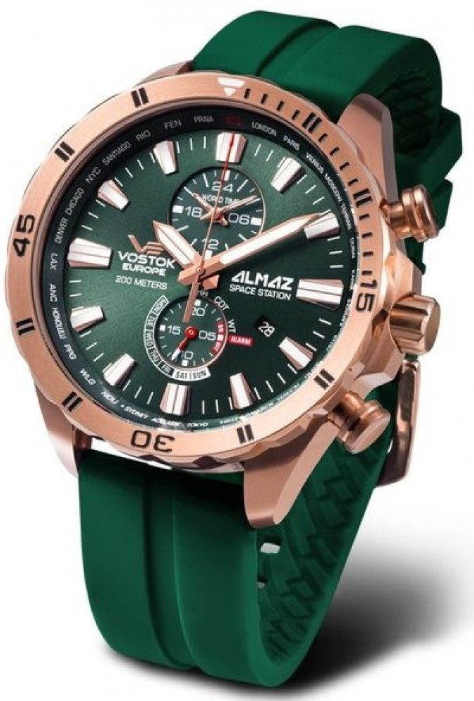 Pánské hodinky Vostok Europe Almaz Multifunctional Line YM8J-320B656S z modelové řady Almaz Space Station. Program Almaz byla série vojenských vesmírných stanic vyslaných do vesmíru Sovětským svazem pod názvem Saljut. Úspěšně obydleny byly dva Almazy – Saljut 3 a Saljut 5. Součástí programu byl vývoj lodí TKS, majících za úkol dopravovat kosmonauty a zásoby na Almazy, nakonec ale kosmonauty na sta...