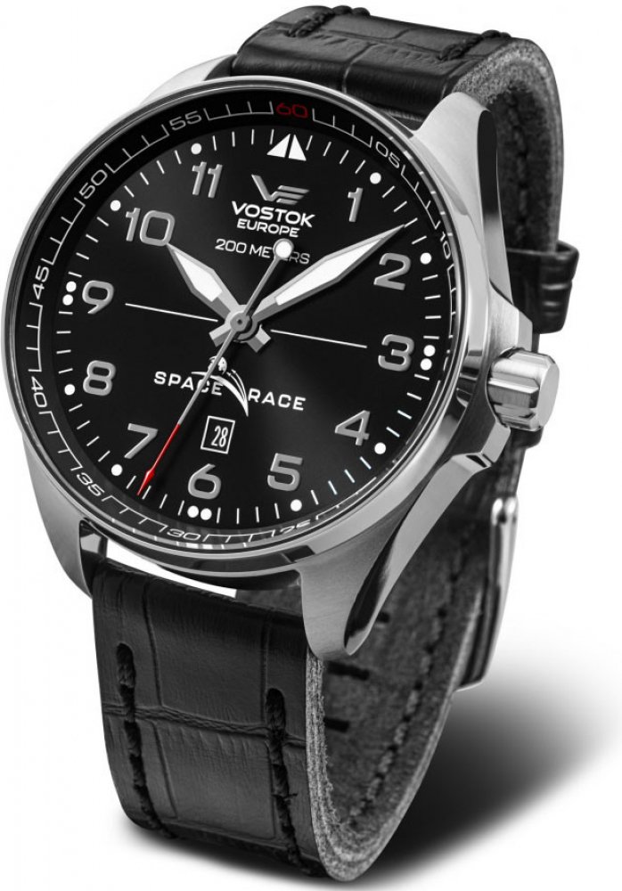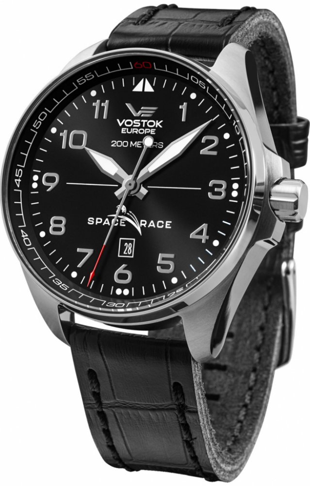 Vostok Europe analogové kůže letecké pánské automatické pro potápění (100+ m) 46.0 mm chirurgická ocel 200 m automatické 130 g minerální bez osazení Space Race kulaté černá černá se superluminou trnová spona 2.2 cm na ruku s arabskými číslicemi stříbrná ocel 4.6 cm velké 40 h 22.0 mm 16.5 mm s trvalým svícením (tritium/Super-LumiNova) s občasnou údržbou (automatické) bez chytrých funkcí