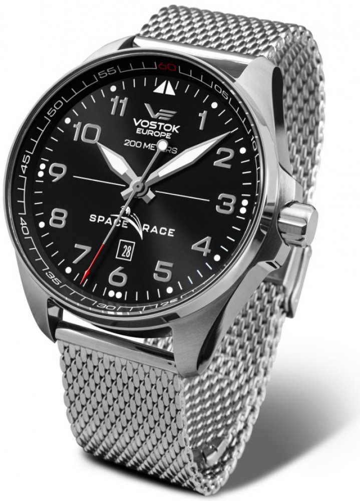 Vostok Europe analogové ocel ocel 200 m automatické minerální letecké pánské automatické kamínky Space Race kulaté stříbrná černá posuvná spona 2.2 cm pro potápění (100+ m) s trvalým svícením (tritium/Super-LumiNova) s občasnou údržbou (automatické) bez chytrých funkcí na ruku s arabskými číslicemi stříbrná ocel 4.6 cm velké pevná ocel 40 h 54.7 mm 22.0 mm 16.5 mm 46.0 mm se superluminou