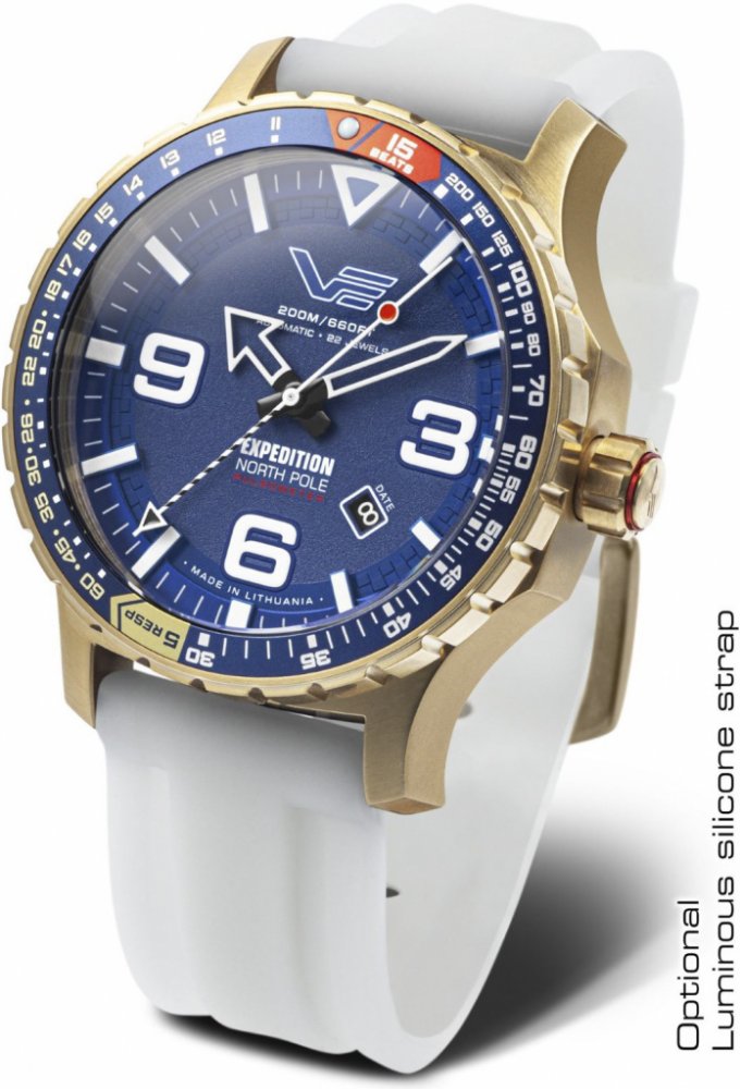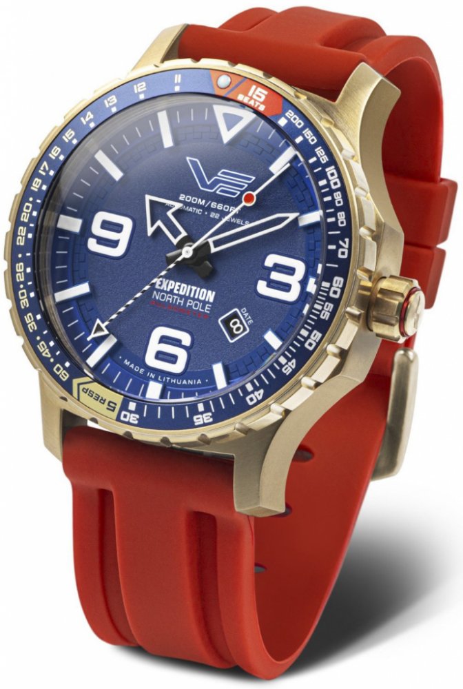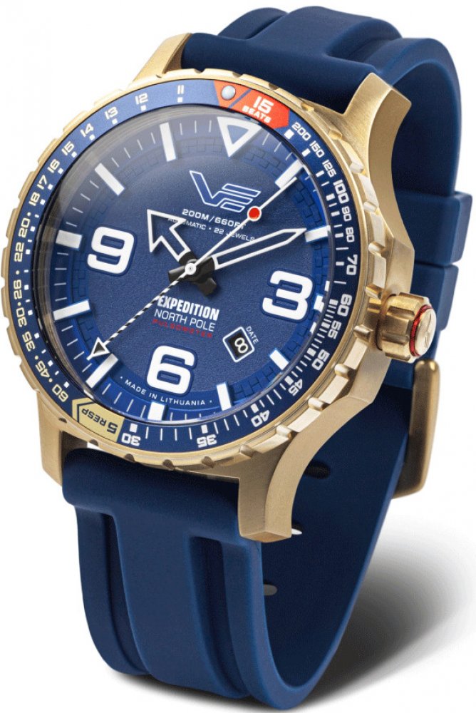 Vostok Europe analogové kůže sportovní pánské automatické pro potápění (100+ m) 47.0 mm ocel 200 m automatické/ručně natahované minerální rubíny Expedition North Pole-1 kulaté vícebarevná modrá se superluminou na přezku 2.4 cm na ruku s arabskými číslicemi zlatá 4.7 cm velké 40 h 24.0 mm 17.0 mm s trvalým svícením (tritium/Super-LumiNova) s občasnou údržbou (automatické) se senzory bez telefonu