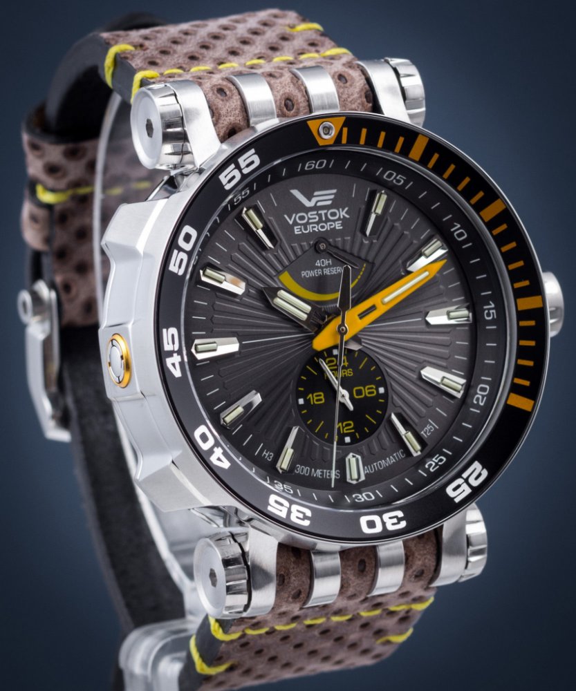 Jedinečné pánské automaty značky Vostok Europe Energia Rocket power reserve indication s vodotěsností 30 ATM osvětlené tritiovými kapslemi