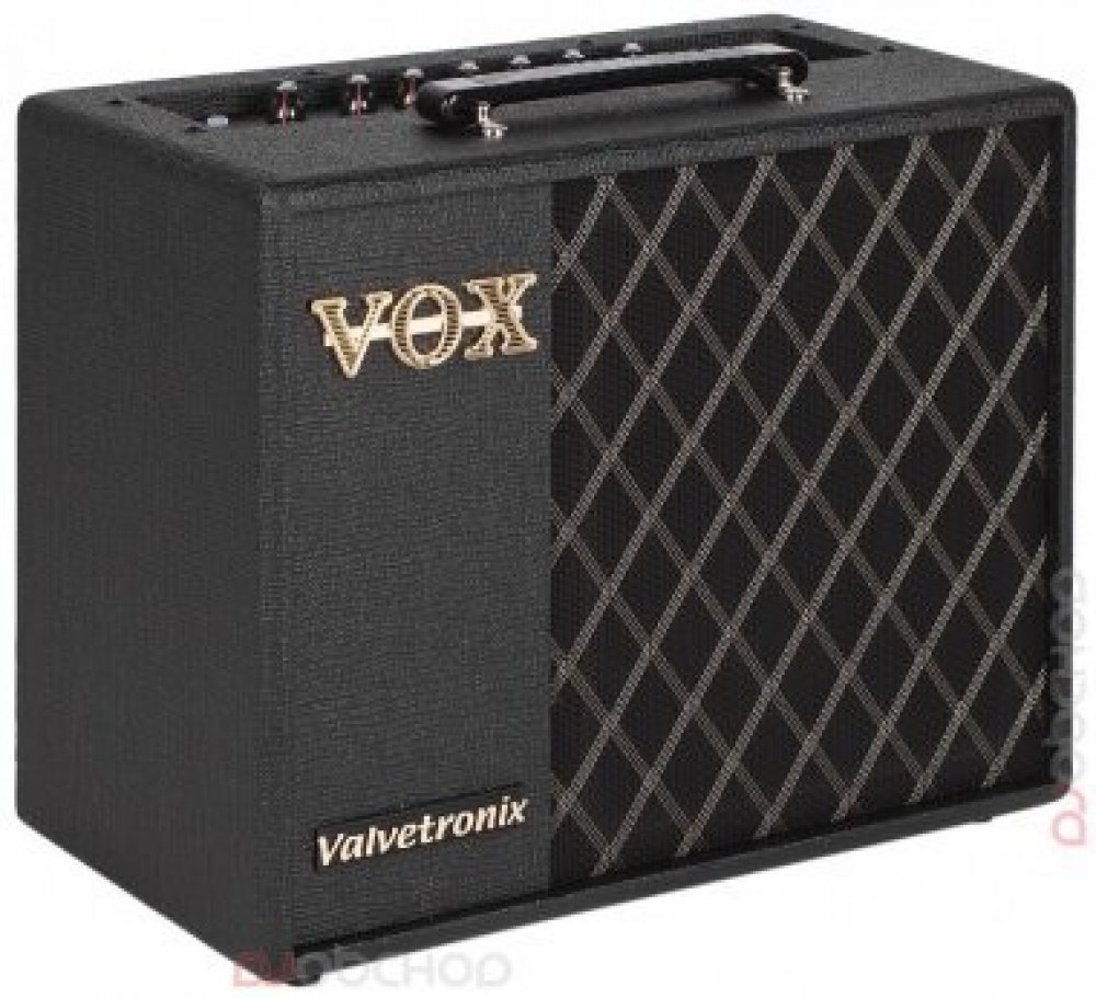 Kytarové modelingové kombo Kytarové modelingové kombo VOX VT20X nabízí spojení analogového lampového zvuku a nejmodernějších modelingových technologií. Základem komba je modelingová technologie VET (Virtual Element Technology), která je schopna emulovat zvuk aparátů přímo na úrovni jednotlivých jejich součástí a okruhů. O analogové „ohřátí“ zvuku se stará multi-stage Valvetronix preamp s elektronkou 12AX7, který zachytí i ty nejjemnější dynamické nuance vaší hry. Vox VT20X disponuje výkonem 20 Wattů a jeho kompaktní rozměry ho přímo předurčují k domácímu hraní a zkoušení. Tento výkon přetaví ve zvukové vlny osmipalcový reproduktor z dílen Vox. Díky sofistikované technologii nepřijdete o bohatost zvuku a zkreslení ani při nižších hlasitostech. Pomocí ovladače Power Level si její úroveň pohodlně nastavíte, na domácí hraní se hodí i sluchátkový výstup. Samozřejmostí je i Aux vstup pro připojení externího zdroje zvuku. V základní nabídce komba je 11 zvuků klasických aparátů (20 při používání software Vox Tone Room), včetně nejvyhledávanějších modelů, exkluzivních boutique zesilovačů i moderních high-gain modelů, 13 efektů (compressor, chorus, overdrive, distortion, flanger, phaser, tremolo, delay a několik druhů reverbů) rozdělených do tří sekcí, díky kterým je můžete pohodlně kombinovat, 33 továrně nastavených presetů (60 při používání software Vox Tone Room) a 8 uživatelských presetů (2 banky, 4 kanály). Hlavní panel je osazen standardními ovladači (třípásmový ekvalizér, hlasitost, gain) a přepínači (možnost přepnutí Biasu a režimů Class A a Class AB). Nechybí USB port pro snadnou integraci s počítačem (PC/Mac), tabletem, telefonem (iOS/Android) a následnou editaci v software Vox Tone Room, nebo ovladač Tap Tempo, pomocí kterého si můžete vlastnosti efektů přizpůsobit tempu vaší hry. Vox VT20X je opravdu velmi univerzální aparát, který vás nenechá na holičkách při žádných zvukových požadavcích, ať už cvičíte nebo nahráváte. Za zlomek ceny můžete mít doma arzenál lampových zesilovačů, které vás navíc nevytlačí z pokoje! Technické údaje • AD/DA převodníky: 24 bit