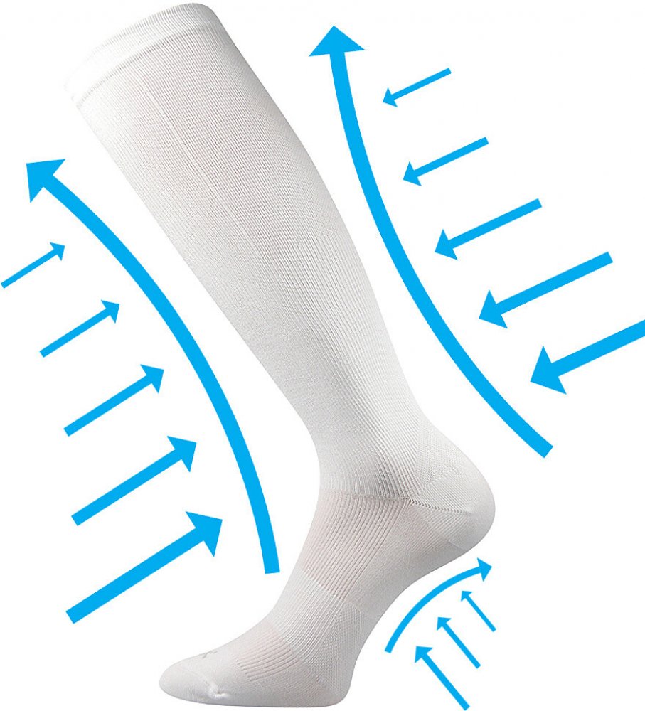 Kompresivní podkolenky VoXX® CROMA se speciální konstrukcí pro Vaše zdraví. Pozitivně působí na krevní oběh díky stupňovitému masážnímu tlaku. Vhodné jsou zejména tam, kde dochází k přílišnému zatížení dolních končetin. U zátěžového sportu se svaly rychleji regenerují, průtok krve je zvýšený a tím se svaly lépe okysličují. Kompresní podkolenky VoXX® jsou vhodné také pro dlouhodobé stání nebo sezení v zaměstnání, dlouhodobé cestování v různých dopravních prostředcích. Jednobarevné hladké podkolenky působí i jako prevence proti křečovým žilám, jsou vhodné pro budoucí maminky a zejména i pro použití ve zdravotnictví, kde jsou zaměstnanci po celý den „na nohou“. Další výhodou je antibakteriální ochrana ionty stříbra v materiálu silproX®. Špičku mají spojenou řetízkováním, šev je tedy plochý a nehrozí Vám otlaky nebo puchýře. Kompresní podkolenky jsou v teplotní třídě A, vhodné do rozmezí teplot od +10°C do +35°C.