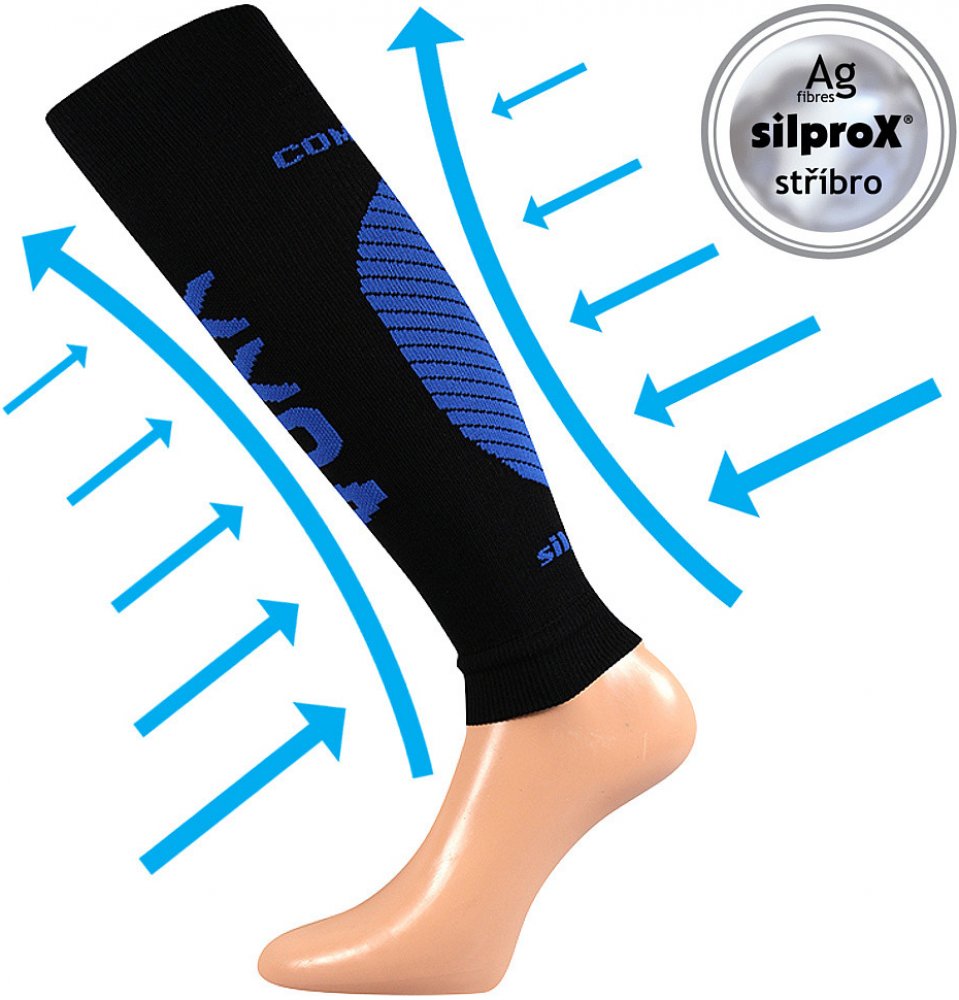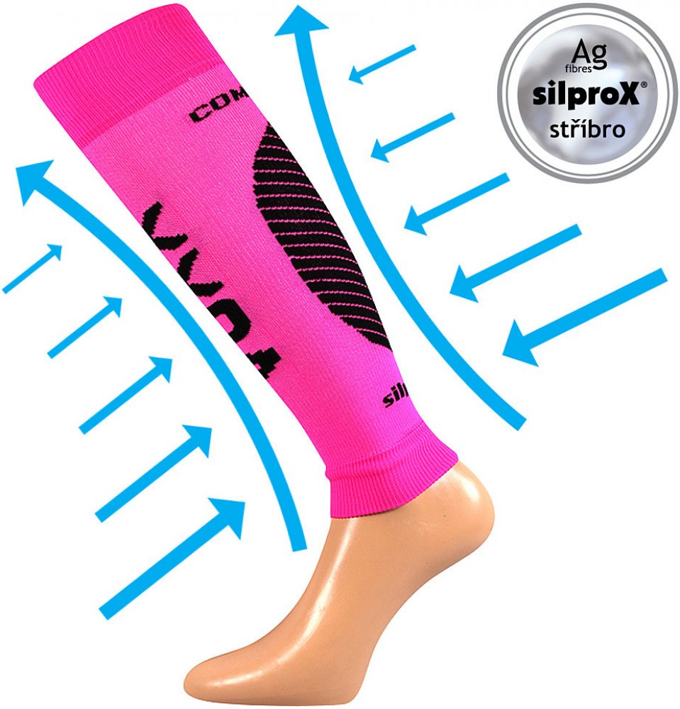 Bandáž na lýtka VoXX s ionty stříbra, tedy antibakteriální jsou vyvedené v atraktivních barvách k vyladění běžeckého oblečení. Bandáže VoXX snižují únavu lýtek vlivem otřesů, zabraňují jejich otokům. Sportovci, kteří nemají rádi sevřené chodidlo v kompresních podkolenkách, ocení jeho volnost, které bandáž lýtka poskytuje.