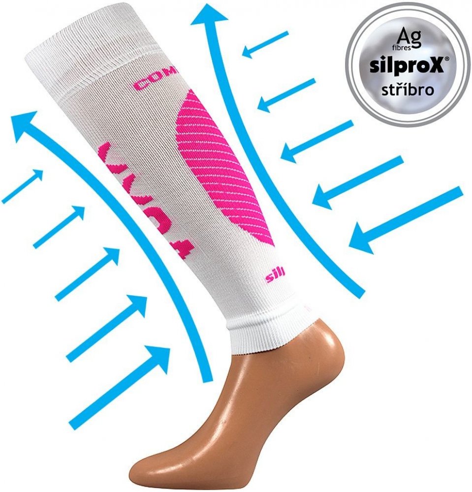 - Výborný podpůrný prostředek pro sporty jako dlouhá chůze nordic walking, běh, treking,horská turistika, halové sporty, běžky, cyklistika. in-line bruslení, sjezdovky, snowboard - podporují zvýšený průtok krve lýtkovými svaly, jejich rychlé okysličení, zajistí jejich následnou rychlou regeneraci, to jest utlumení typické bolesti svalů po nezvyklé námaze