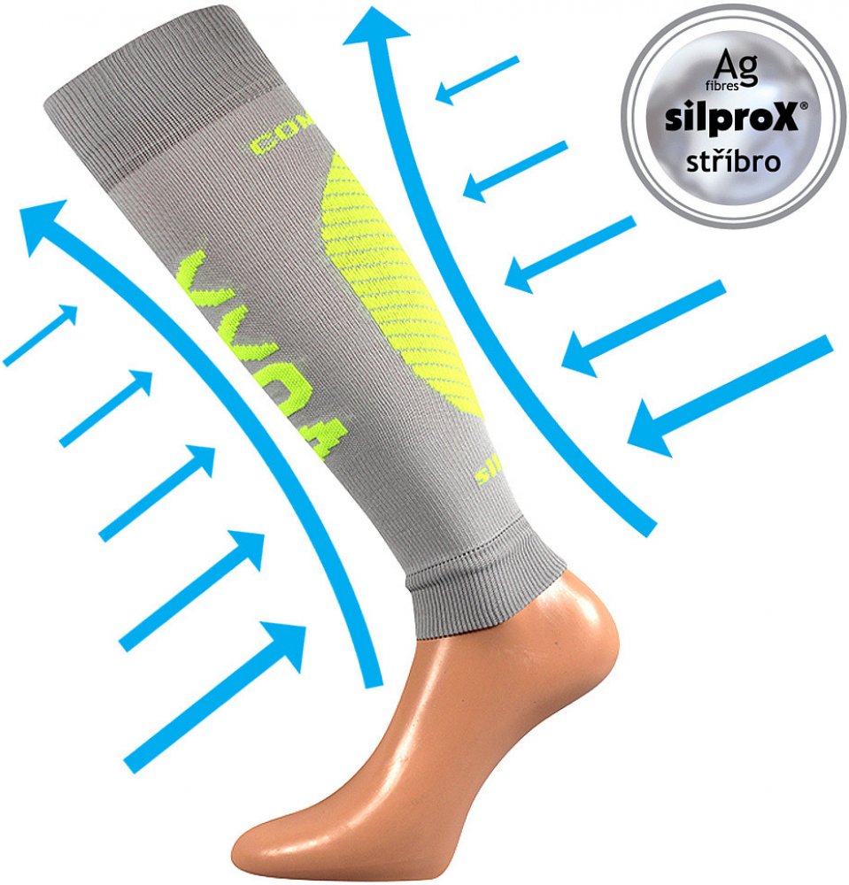 Pozitivně působí na krevní oběh díky stupňovitému masážnímu tlaku. Veselé návleky v pestrých neónových barvách užijete při mnoha sportovních aktivitách. Další výhodou je antibakteriální ochrana ionty stříbra v materiálu silproX®, chrání před vznikem bakterií a tím i zápachem. Prodyšné zóny zajišťují dobrý odvod potu od pokožky. Kompresní návlek v teplotní třídě B, je vhodný do rozmezí teplot od -5°C až +20°C.