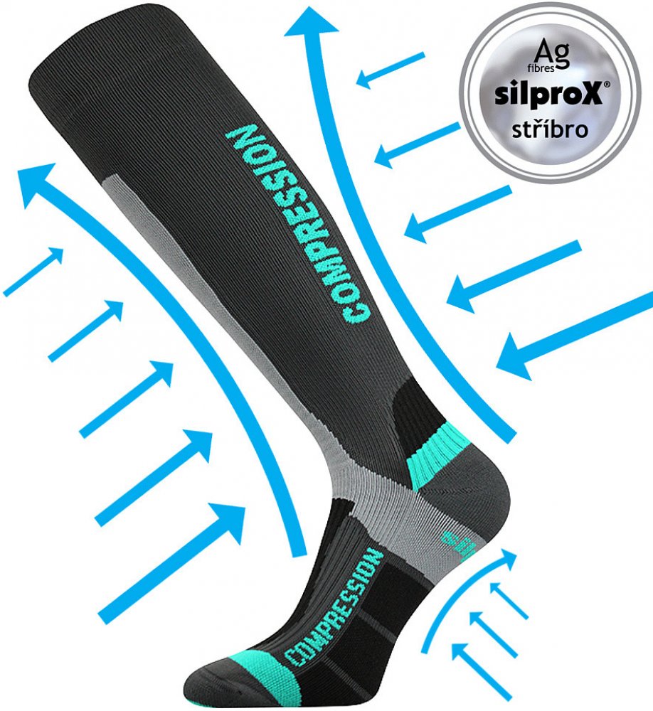 Unisex anatomicky tvarované kompresivní podkolenky s řetízkovanou špicí a se speciální konstrukcí pro Vaše zdraví. Pozitivně působí na krevní oběh díky stupňovitému masážnímu tlaku. Jsou zejména vhodné tam, kde dochází k přílišnému zatížení dolních končetin. Antibakteriální ochrana materiálem silproX s ionty stříbra. U zátěžového sportu, rychlá regenerace svalů, zvýšení průtoku krve, větší okyslič...