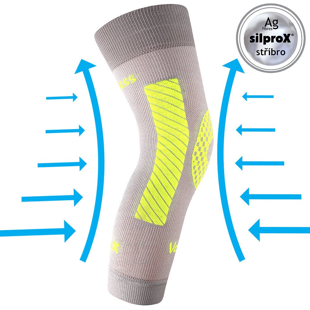 Kompresní návleky na kolena VoXX Protect s ionty stříbra, tedy antibakteriální jsou vyvedeny v atraktivních barvách k vyladění běžeckého oblečení.