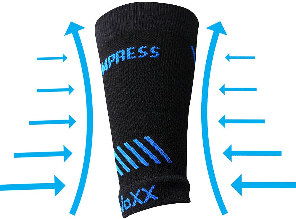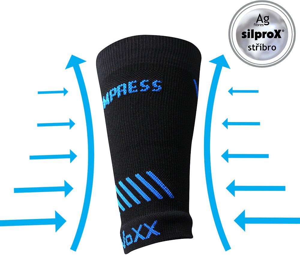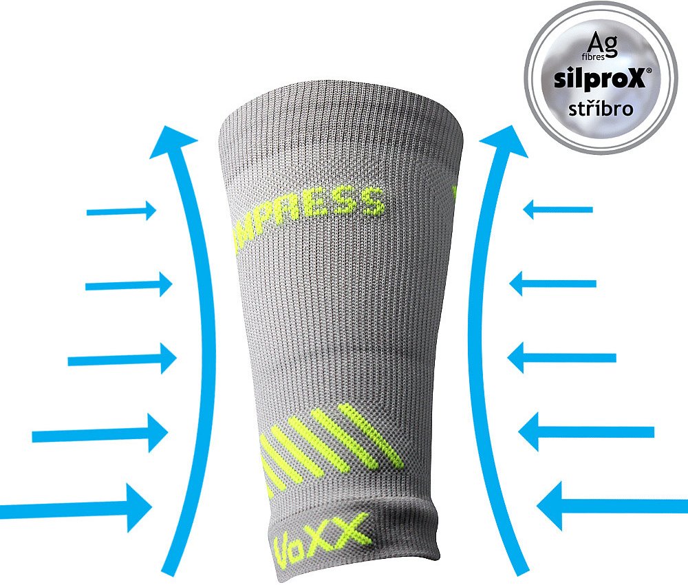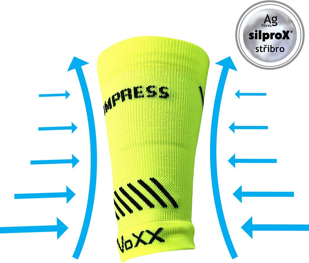 Kompresní návleky na zápěstí VoXX s ionty stříbra, tedy antibakteriální jsou vyvedené v atraktivních barvách k vyladění sportovního oblečení. Kompresní návleky VoXX fixují vazy zápěstí, snižují únavu vlivem otřesů a jednostranného zatížení, zabraňují otokům. Bandáž na zápěstí ocení všichni sportovci a pracovníci, kteří potřebují zafixovat uvolněné nebo namožené vazy.