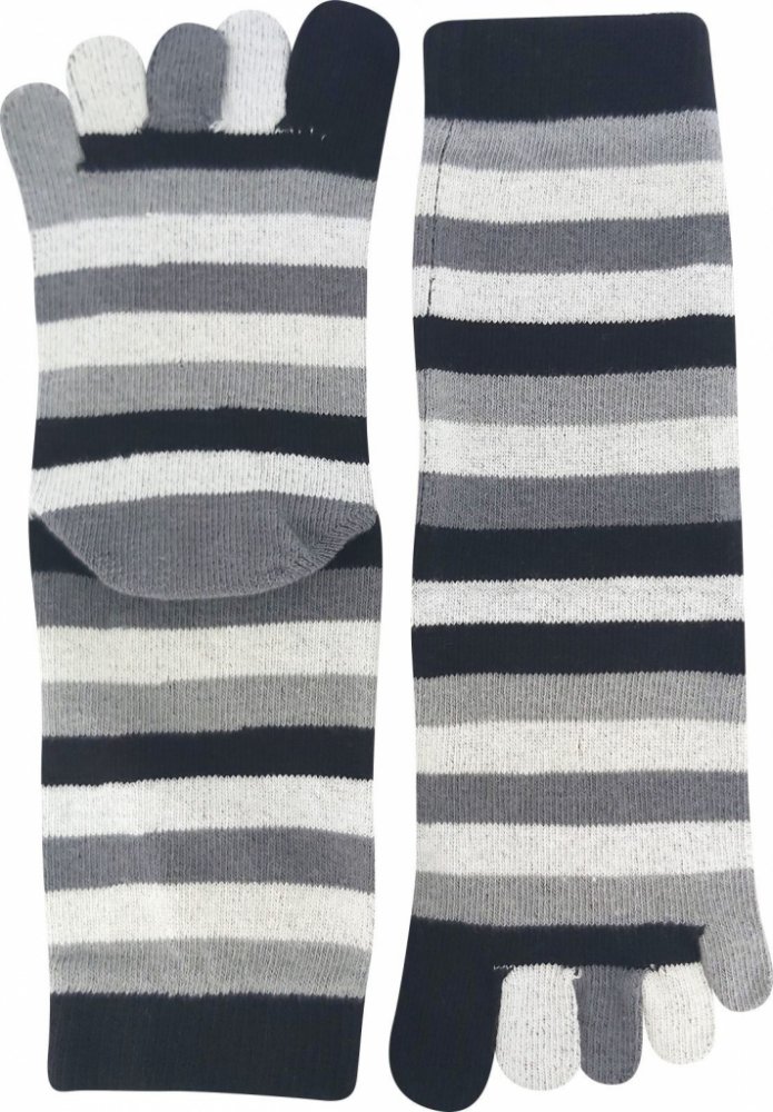 Prstové ponožky Boma® PRSTAN 10 jsou vyšší pruhované ponožky, které oblékají a chrání i prsty na noze. Veselé ponožky mají vysoký podíl přírodní bavlny, díky které jsou jemné na omak a dobře pohlcují vlhkost. Prstové ponožky jsou vyšší a hodí se nejen do barefootové ale i fivefingers obuvi.