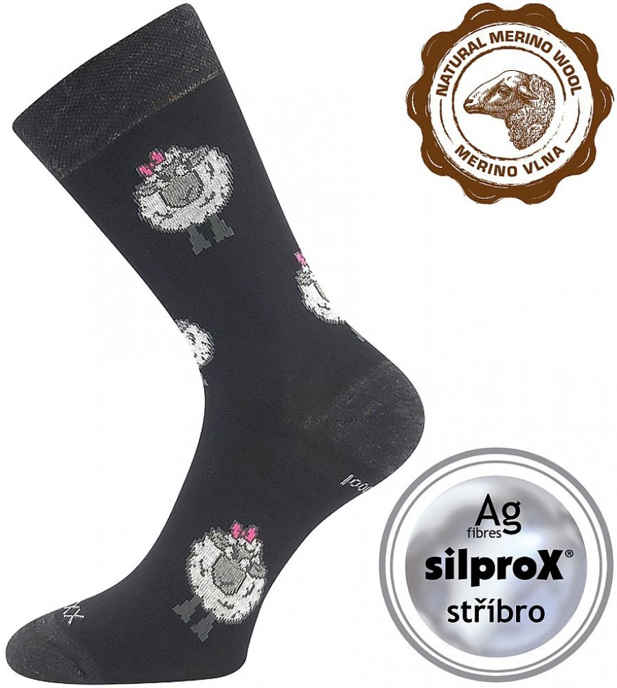 VoXX VLNĚNKA teplé veselé merino ponožky černá