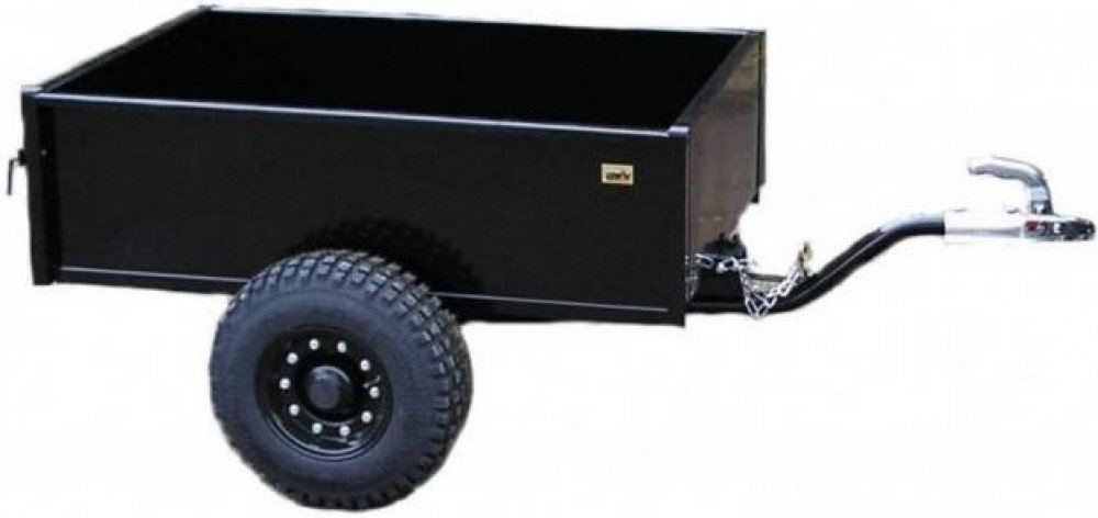 Čtyřkolkový neodpružený vozík se sklápěcí korbou, vyklápěcí odnímatelné zadní čelo, snížené těžiště, vysoká stabilita, tuhá a odolná konstrukce, pro tažnou kouli ISO 50, nosnost 300 kg, vhodný i pro slabší typy čtyřkolek, hmotnost 75 kg, nehomologovaný