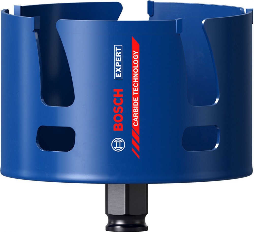 Děrovka EXPERT Construction Material PC Plus – Pro vrtačky/šroubováky, Pro příklepové vrtací šroubováky Při vrtání odolných materiálů vydrží až 50× déle než děrovka Bosch 2609256D05 Dlouhá životnost při řezání otvorů do cihel a dřevotřískových desekVýjimečná odolnost díky Bosch Carbide…