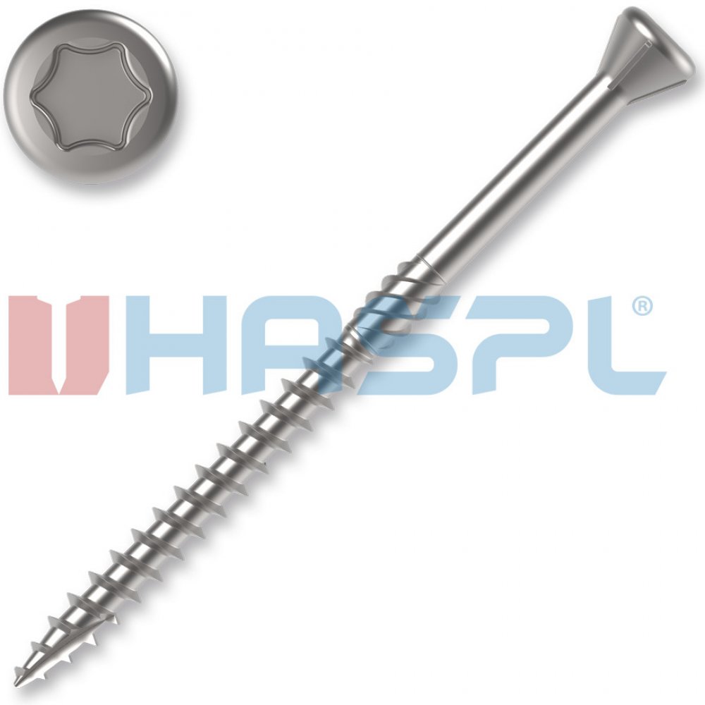 Terasové vruty se vyznačují malou hlavou, která je určena pro vydařené pohledové spoje. Hodí se pro horizontální i vertikální použití, např. pro terasy nebo dřevěné fasády.