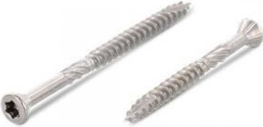 Speciální nerezový terasový vrut, který odolává korozi a je vhodný pro venkovní použití se zvyšenou vlhkostí. Vruty mají výraznou, zápustnou a lehce čočkovitou hlavu která je na spodní straně opatřena drážkováním, pohon je opatřem torxem pro vysoký kroutící moment, špička je osazena frézou a řezným břitem. Masivní tělo je vhodné k použití zejména pro terasy, fásády, dřevěné lávky, venkovní stavby, altány, a ostatní dřevostavby. Rozměry terasového vrutu