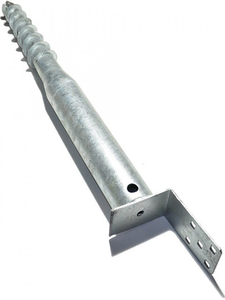 Zemní vrut MTR® typ L je k dispozici ve 3 velikostech (šíře kotveného prvku 80, 100 a 120 mm, délka vrutu 685 - 885 mm), v povrchové úpravě žárový zinek. Jedná se o zemní vrut s navařenou patkou tvaru L pro kotvení hranolů a trámů dřevěných konstrukcí (terasy, verandy, pergoly, přístřešky, dětská hřiště, dřevostavby). Zemní vruty se do země instalují zašroubováním pomocí montážní tyče, instalačního kříže nebo elektrické vrtačky s příslušnou redukcí, které si u nás můžete koupit nebo zapůjčit.