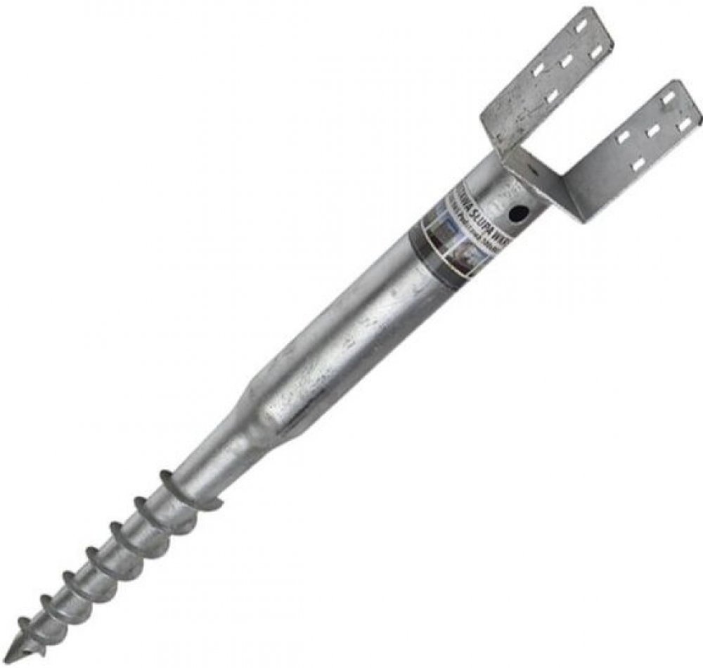 Zemní vrut PWU DOMAX s patkou ve tvaru U.PoužitíJe vhodný pro kotvení konstrukcí tvořených sloupky z 100 mm trámků bez nutnosti betonování.K zakládání lehkých staveb, pergol, teras, garážových stání apod.VlastnostiPatka je součástí vrutu, což zaručuje jeho vysokou pevnost.Díky ostrému hrotu a šroubovici lze vrut zavrtat rovnou do půdy pomocí jakékoliv pevnější kulatiny o průměru 17 mm, kterou pros...