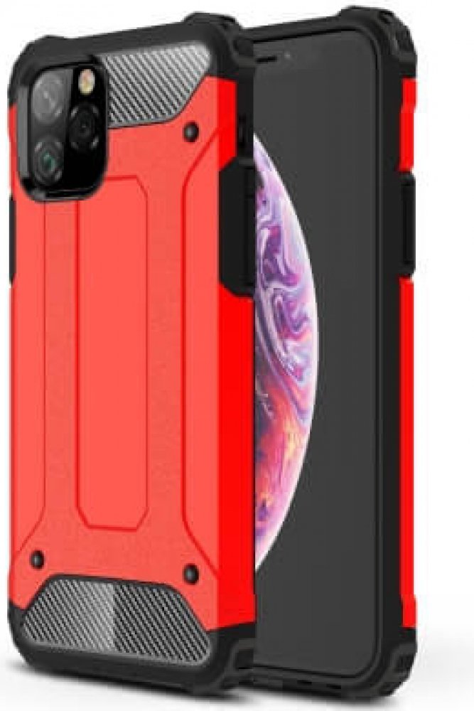 TOUGH Ochranný kryt Apple iPhone 11 Pro Max červený Extra odolný a pevný kryt vhodný pro Váš Apple iPhone 11 Pro Max. Je vyroben kombinací kvalitních a trvanlivých materiálů - pružného TPU a pevného polykarbonátu. Poskytuje nekompromisní ochranu před poškozením, škrábanci a nečistotami při každodenním používání. Navíc má vyztužené rohy, které pomáhají předcházet vážnému poškození a připojeny prachové kryty chrání nabíjecí porty a audio konektory od všech druhů nečistot. Stylový design navíc dodá vašemu smartphonu nový vzhled. Obal je rčen pro Apple iPhone 11 Pro Max Kombinace kvalitních materiálů - TPU a plast Ochrana smartphonu před poškozením Vyztužené rohy pro ještě vyšší ochranu Pogumované boční tlačítka