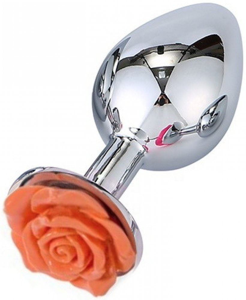 Anální kolík střední velikosti, vyrobený z hladké chromované ocele. V základně kolíku je zasazena oranžová růže, která ozdobí Váš zadeček. Kolík dodáván v černém plyšovém sáčku.