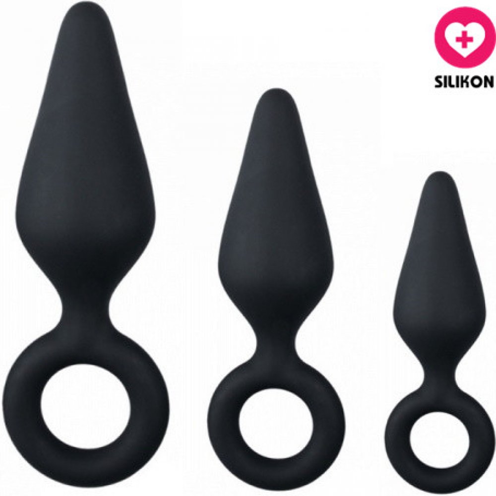 Sada tří análních kolíků různých velikostí, vyrobených z černého 100% silikonu, která pomůže roztáhnout a uvolnit před análním sexem, nebo navodí pocitu plnosti v zadečku. Oproti klasickým kolíkům má výhodu, že po zasunutí nepřekáží mezi hýžděmi velká kulatá základna, ale kolíky perfektně padnou. Díky tomu jej můžete mít v zadečku například na nákupu, v práci atd. Použití je už na fatanzii každého. Ať již sadu použijete jako tréninkový nástroj k postupnému uvolnění a roztažení análního otvoru před análním sexem, nebo kolíky použijete jako doplněk při souloži pro sebe i Vašeho partnera, zaručeně budete spokojeni.